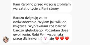 Konkretne, praktyczne, trzygodzinne zajęcia nad zrozumieniem, uwolnieniem i zmianą Twoich programów i przekonań związanych z nadwagą. Dlaczego TY-le-JESZ? Dlaczego nie możesz schudnąć? Jaka jest konkretnie u Ciebie rola dodatkowych kilogramów? Jaki to konflikt emocjonalny? Co podświadomie przeżywasz, że organizm włączył Ci program przybierania na wadze. Poznaj i zrozum swoje konflikty, uwolnij je podczas warsztatu. Skorzystaj z różnych technik. Poznaj i zrozum swoje konflikty, uwolnij je techniką EFT oraz innymi technikami samodzielnego uwalniania emocji. Zrozum programy rodowe, powodujące nadwagę, ale przede wszystkim Twoje własne.